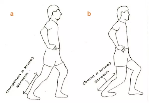 - Do frequent calf stretches (with barefoot not with heels on) – hold for 30secs in each of these positions on each side 3 times a day.